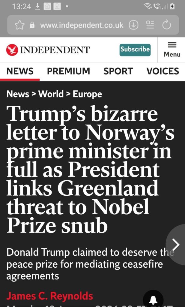 ”Dear Jonas…” Trumps bisarra brev The Independent ”Dear Jonas. Considering your Country decided not to give me the Nobel Peace Prize…” 🙄🙄🙄🙄🙄🙄🙄 Dela detta: Dela på X (Öppnas i ett nytt fönster) X Dela på Facebook (Öppnas i ett nytt fönster) Facebook Gilla Laddar in …
