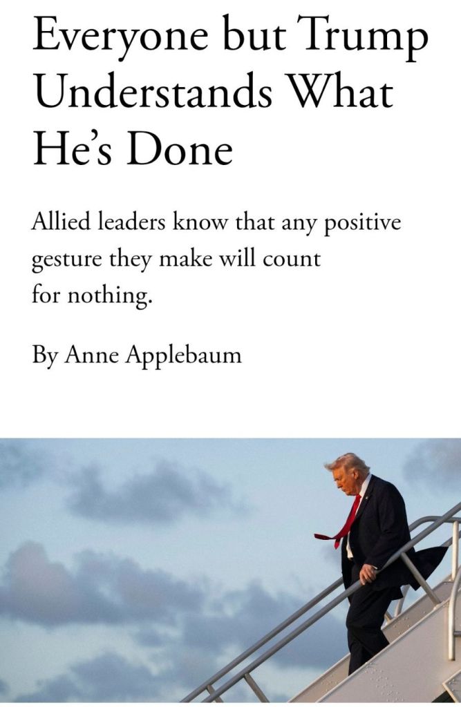 Mitt i prick, som vanligt, Anne Applebaum The Atlantic Everyone but Trump understands what he’s done – Anne Applebaum i The Atlantic Dela detta: Dela på X (Öppnas i ett nytt fönster) X Dela på Facebook (Öppnas i ett nytt fönster) Facebook Gilla Laddar in …