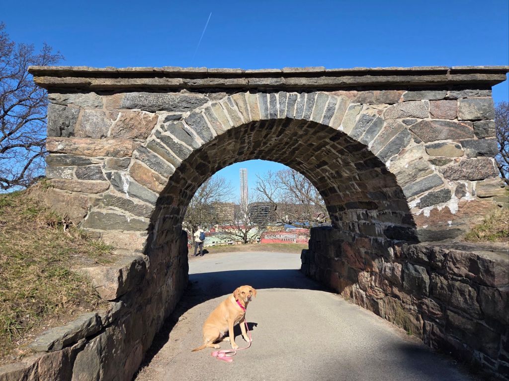 Av mina tre senaste hundar – kanske av alla fem !- är Femma den som faktiskt uppskattar en koppel- och stadspromenad. Och jag kan ju också sakna stan ibland, så nu åkte vi in till stan, Femma och jag.