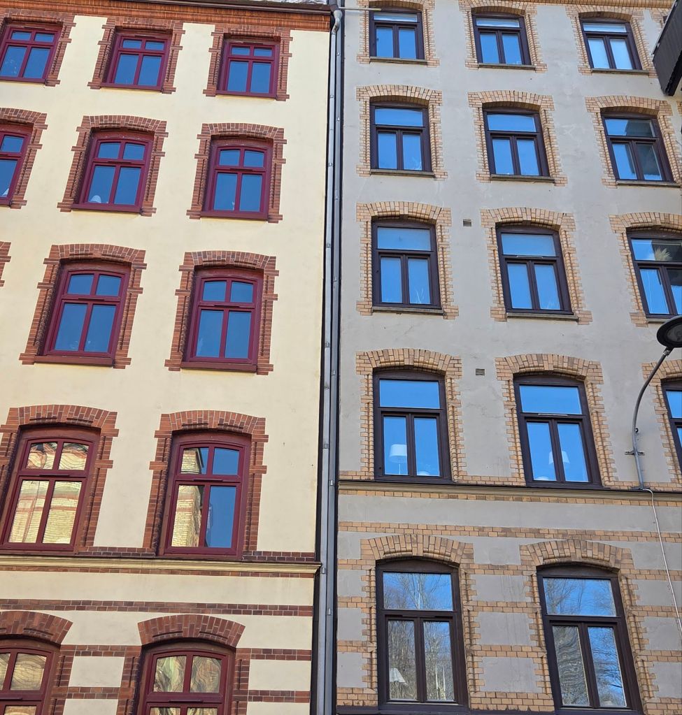 Sedan stegade vi iväg mot Linnéstaden m.m. där jag fick utlopp för mitt ytliga intresse för arkitektur/fasader. Vädret var vackert, sällskapet utsökt och det blev en fin promenad och stadsutflykt.