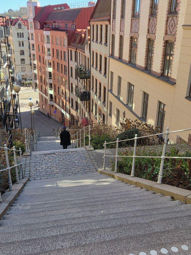 Precis innan vi skulle ta tåget hem hände något rätt kul. Jag var inom Naturkompaniet igen och tittade på en liten väska när ett par närmade sig och kvinnan sa till sin man att just en sådan väska som jag höll i ville hon titta på. Jag kommenterade att man vill ju gärna ha en av varje färg… Och hon visade sin som hon redan hade hängd över bröstet.