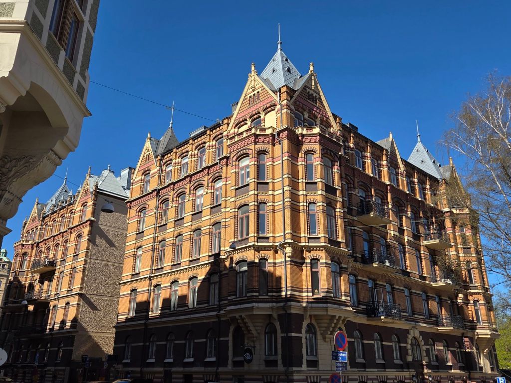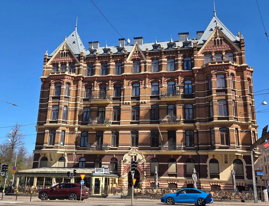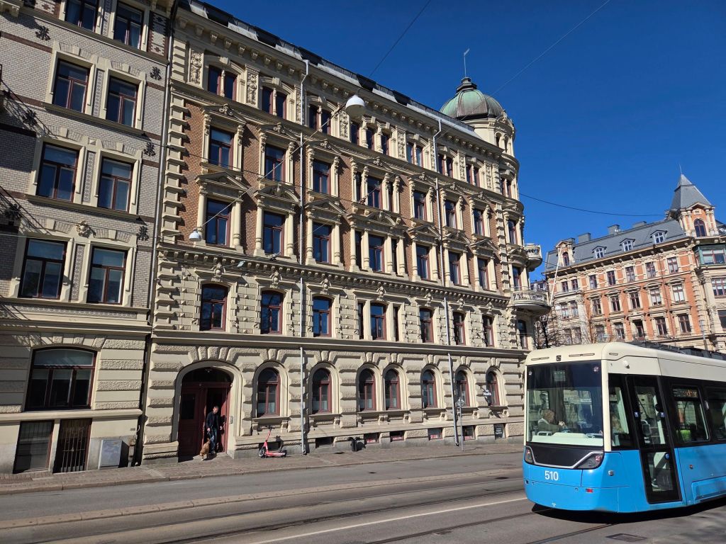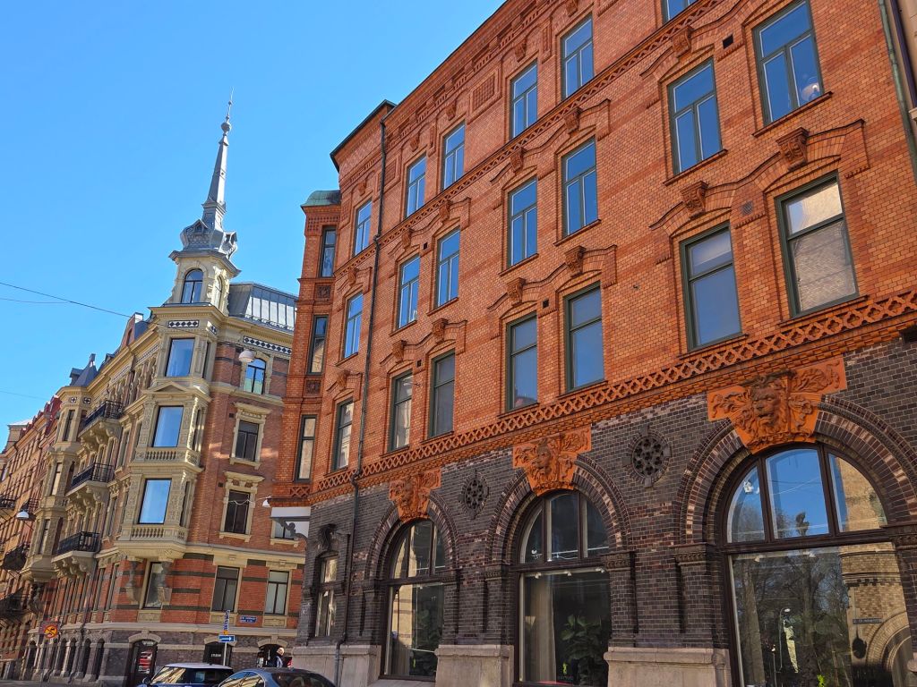Jag förundrades dels över så många vackra fasader, dels över att jag spenderade SÅ mycket tid i dessa kvarter under några år på 1990-talet – utan minsta tanke på de vackra byggnader man omgavs av. Vasastan var mest bara transportsträcka till och från Handelshögskolan, Humanisten, Victoriagatan (mammas salong), Valand, Kåren m.m. Dessutom susade man ju fram på cykel, inte hade man någonsin tid att titta sig omkring… Så är det nog för många.