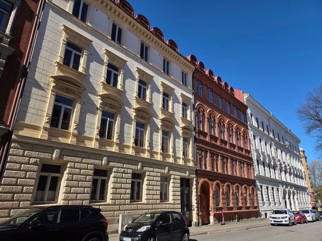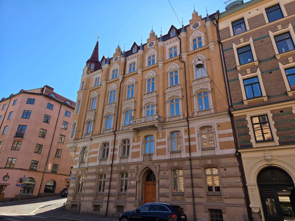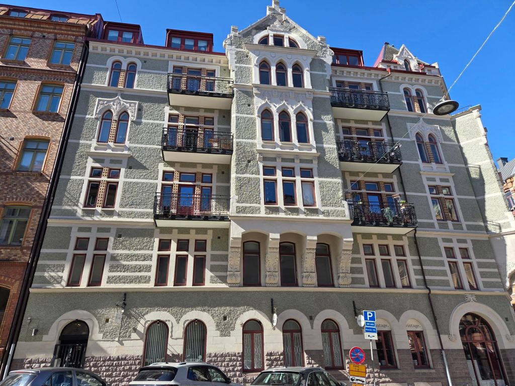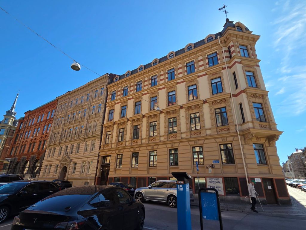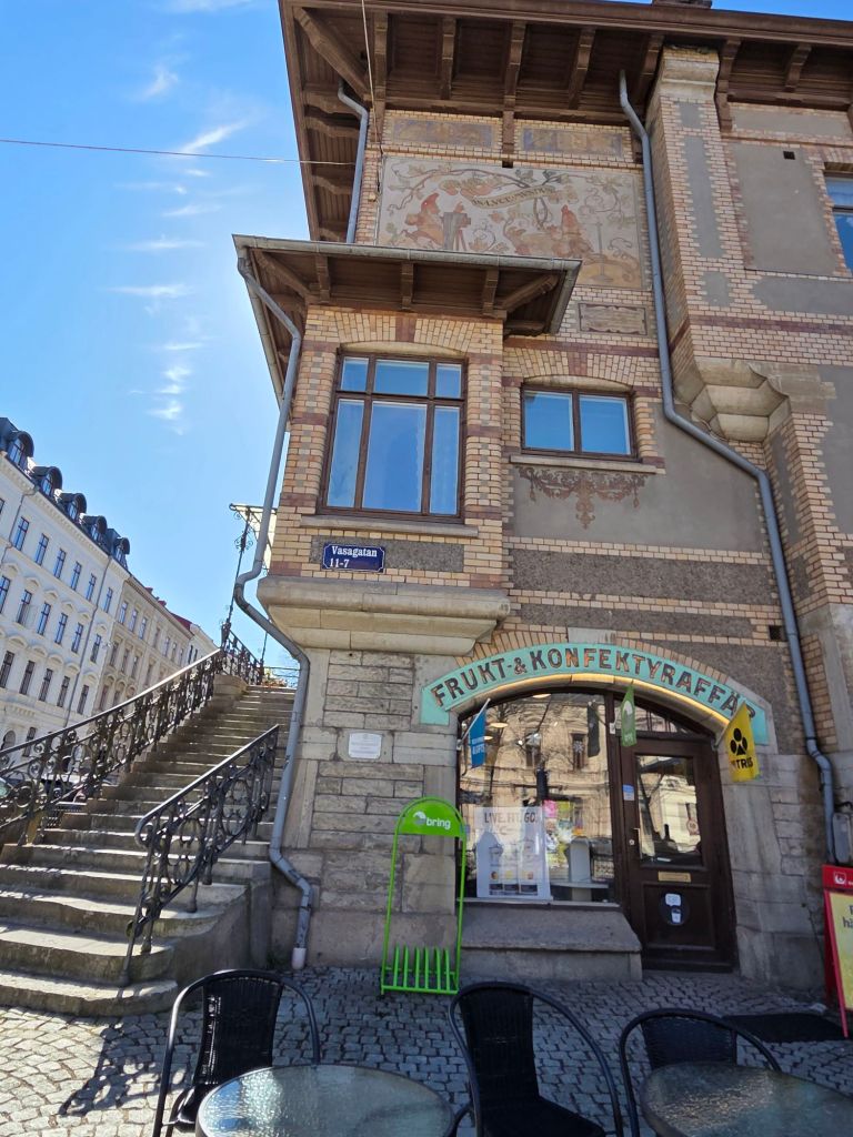 Jag förundrades dels över så många vackra fasader, dels över att jag spenderade SÅ mycket tid i dessa kvarter under några år på 1990-talet – utan minsta tanke på de vackra byggnader man omgavs av. Vasastan var mest bara transportsträcka till och från Handelshögskolan, Humanisten, Victoriagatan (mammas salong), Valand, Kåren m.m. Dessutom susade man ju fram på cykel, inte hade man någonsin tid att titta sig omkring… Så är det nog för många.