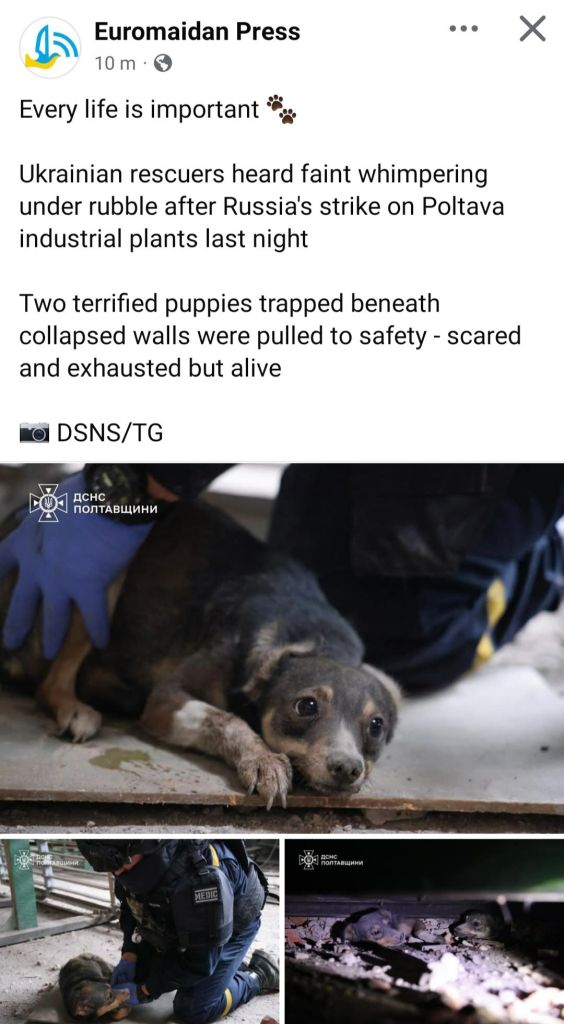 Ukrainarna har gjort sig kända för att även rädda djuren som drabbas av de ryska attackerna… ❤🇺🇦