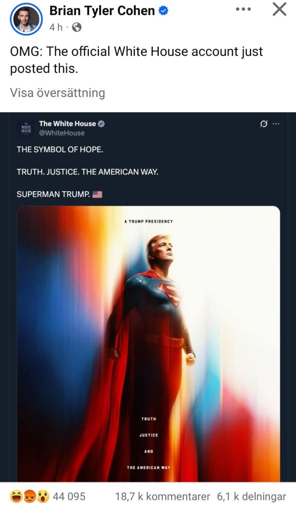 Dags för lite fredagshumor. Bara det att det är på riktigt… 🙄 Hur sjukt?? ”Vita huset” beter sig som en femåring.