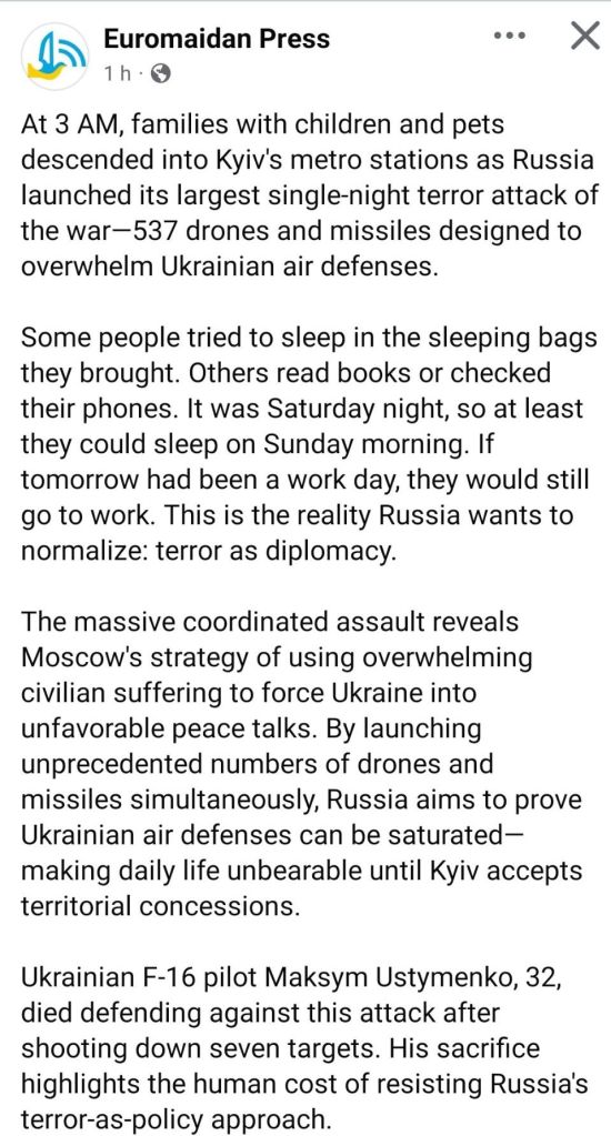 ”The American president wrote, ‘Vladimir, STOP!’ on his Truth Social account in April, but the Russian president did not halt his offensive in eastern Ukraine. The Ukrainian president called for an unconditional cease-fire in May, but the Russians did not agree to stop attacking Ukrainian civilians from the air. Donald Trump repeatedly promised, during his campaign, that he would end the war ‘in one day,’ but the war is not over. He spoke to Vladimir Putin yesterday, and Putin responded with more drones and missiles than ever before. This morning, parts of Kyiv are burning.