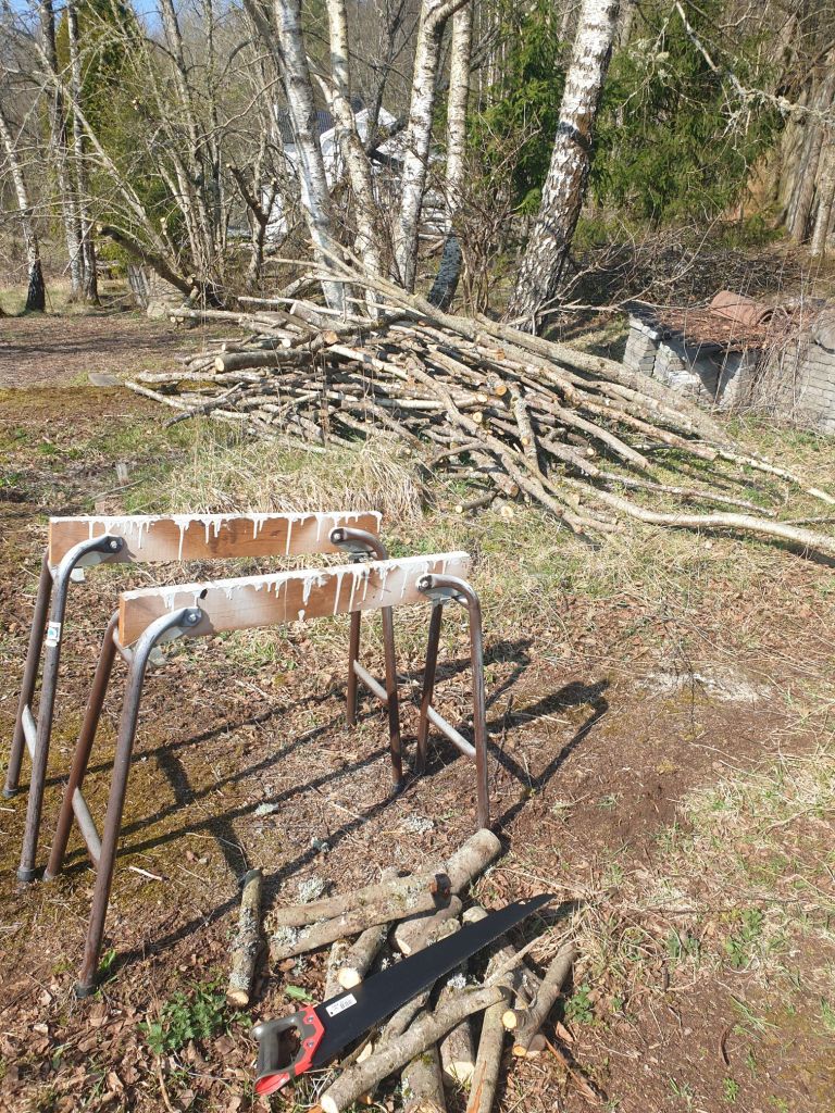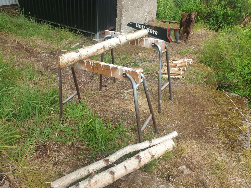 Två riktigt bra prylar som jag räddade ur pappas garage var ett par bockar – perfekta att använda nu när jag ska såga upp lagom långa vedklabbar/pinnar.