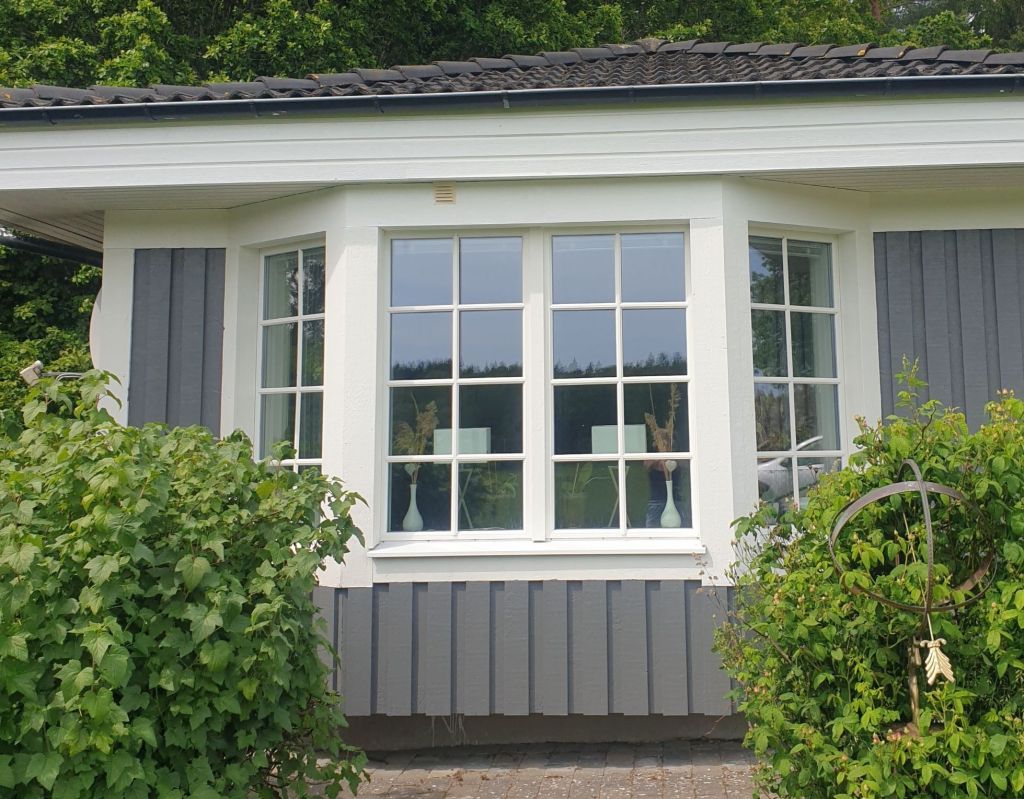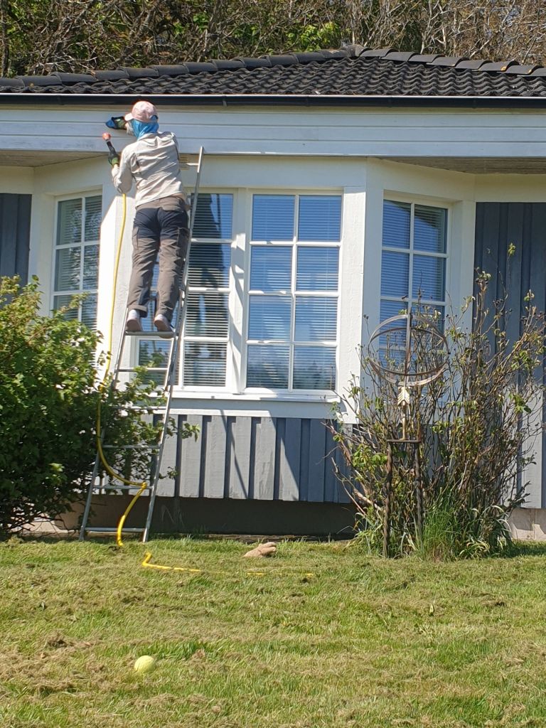 Ja, inte hela huset på en gång – någon måtta… – men hela framsidan + vindskivor på sidorna av huset får sig en rejäl uppfräschning i år.
