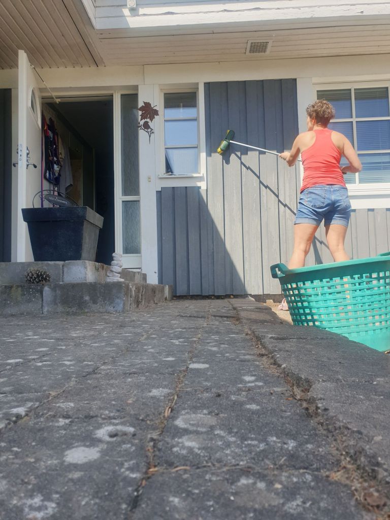 Jag började redan i våras med det bajs-tråkiga förarbetet: mögel- och algbehandling samt målartvätt. Herrreguuud så tråkigt, men på de ytor som verkligen behövde sin behandling syntes ju desto större skillnad, vilket var motiverande.