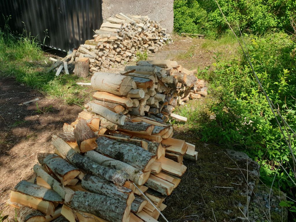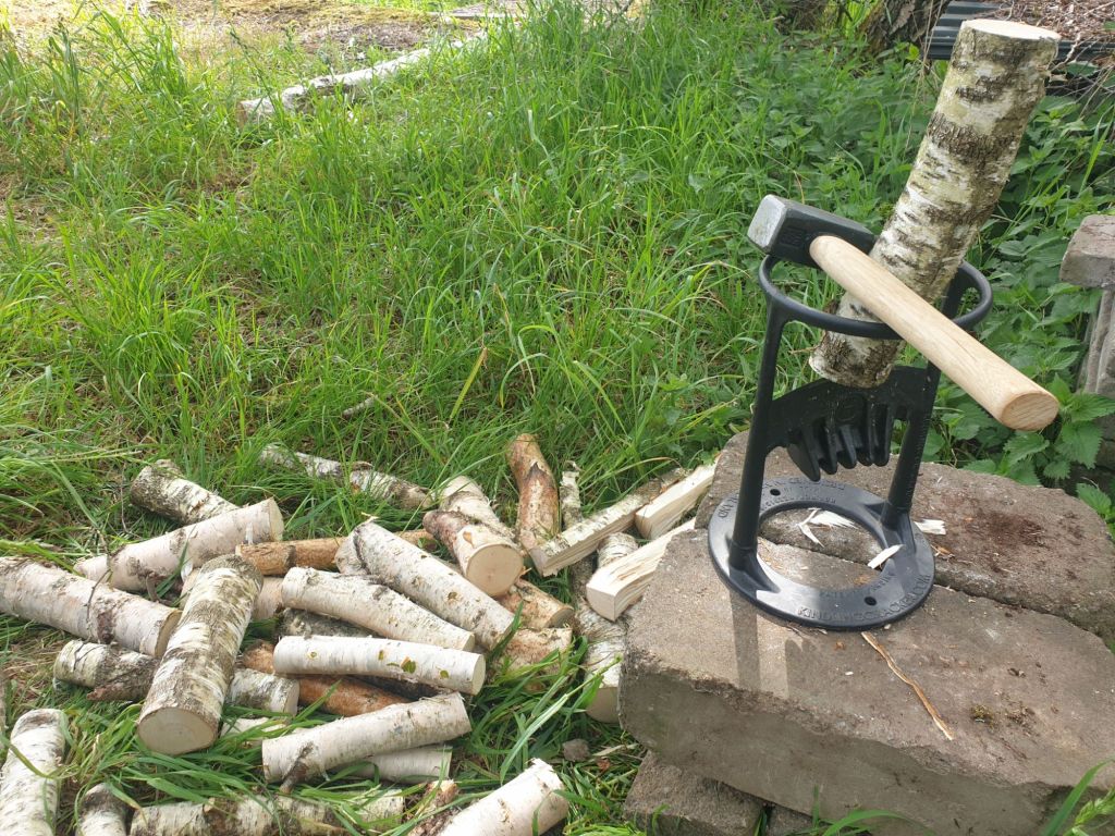 Haha, vad han skrattade – men jag är jättenöjd! Här har svingats slägga och klyvts många vedklabbar redan…