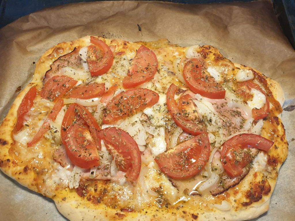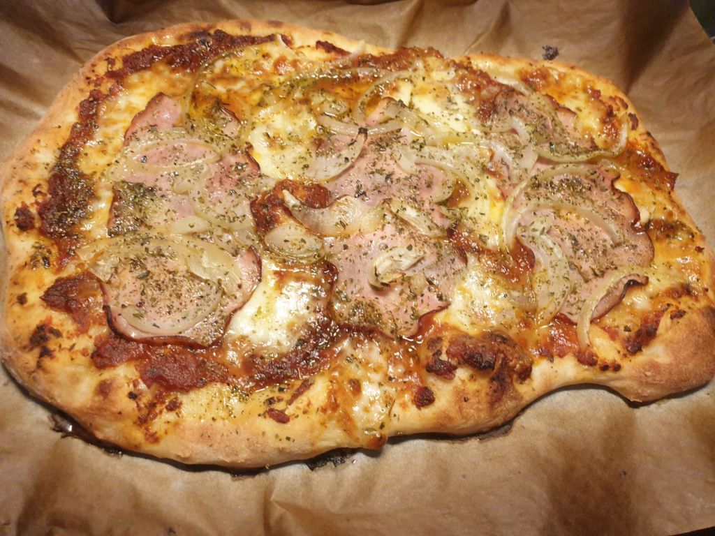 Rostbiff eller skinka brukar få vara med på pizzan, plus någon grönsak. Någon gång blev det Hawaii-pizza. Och så en masssssa oregano, givetvis.