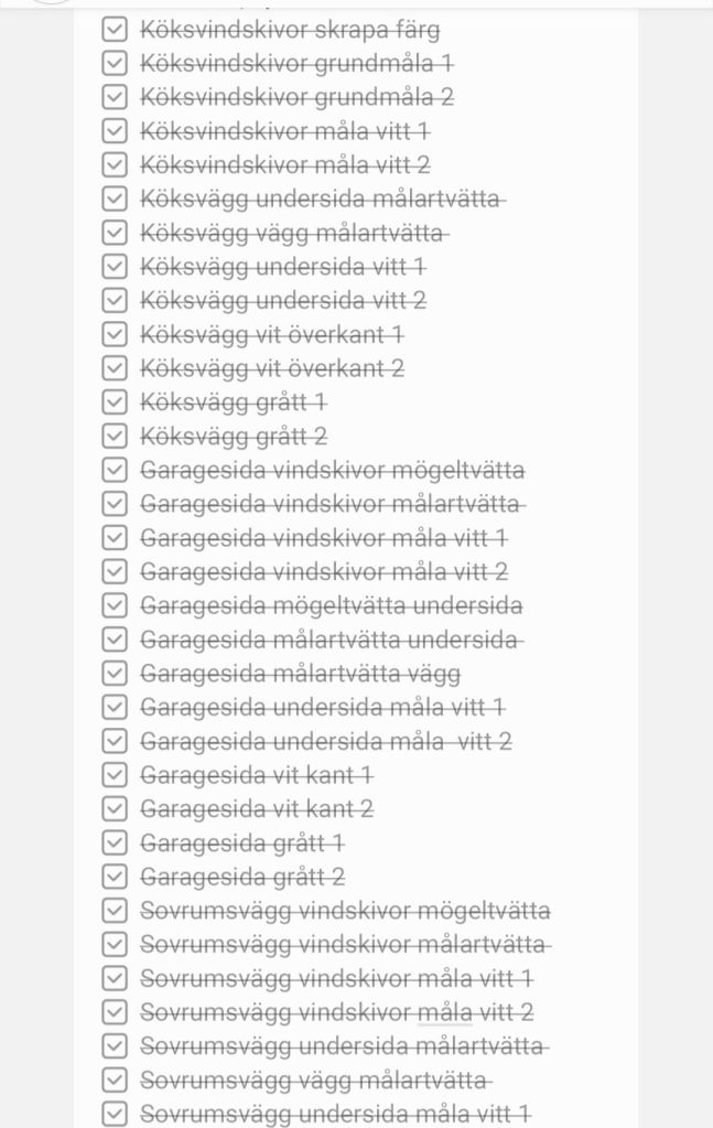Så nu går jag här och myser och tittar på mitt nymålade hus – och på listan över alla moment som bockats av. Och så ger jag mig en klapp på axeln.