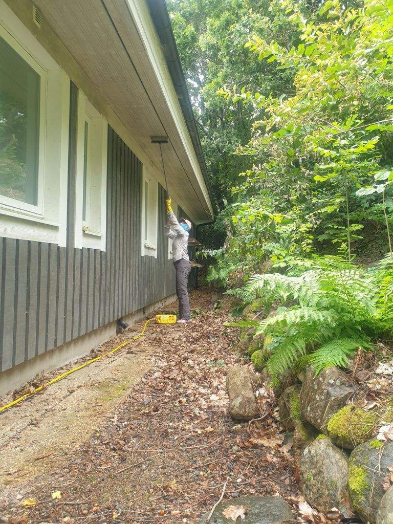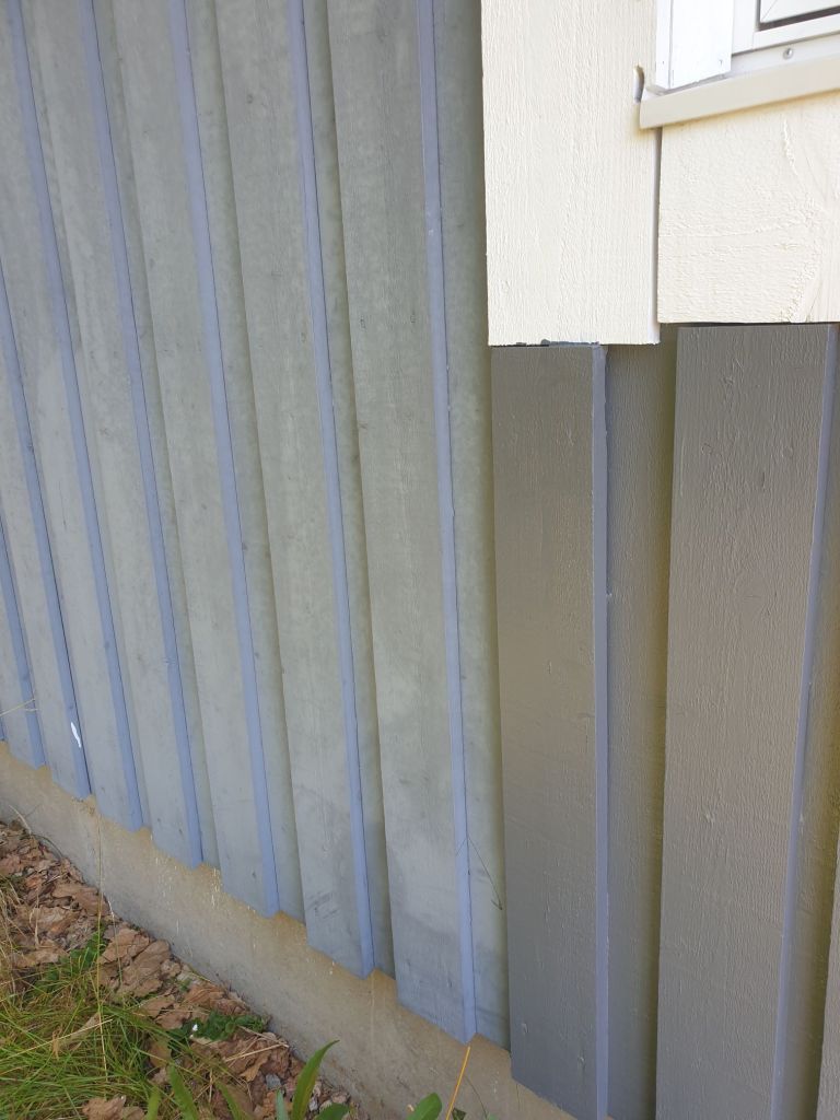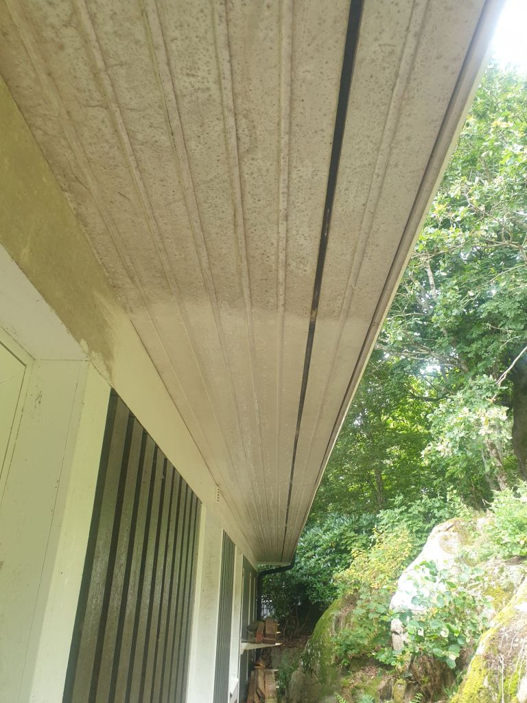 Spruta – skrubba – spola – upprepa. Vilken skillnad det blir – dessvärre syns också (på nära håll) att utsprångets undersida nog behöver målas också. Vilken tur att färgen står redo i garaget.