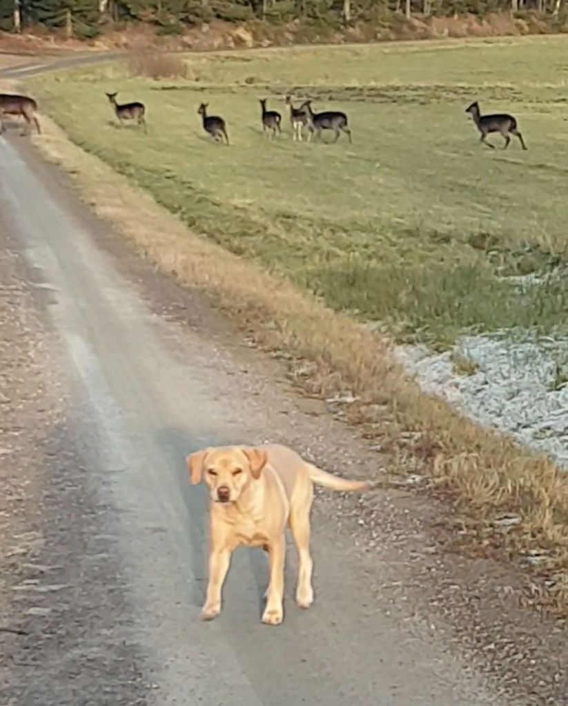 Och även Delfi var duktig, som gick lös bredvid mig och inte heller hade en tanke på att springa efter våra kompisar. Men det har jag inget bevis för den här gången.