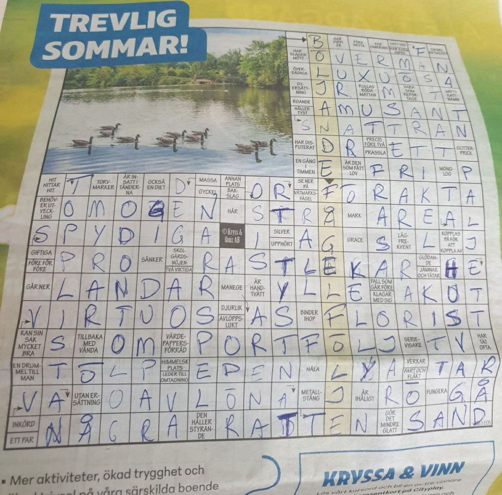 Jag är ingen hejare på korsord, och ofta har jag lämnat dem halvgjorda och på dåligt humör… Sudoku och kakuro är verkligen mer min grej.